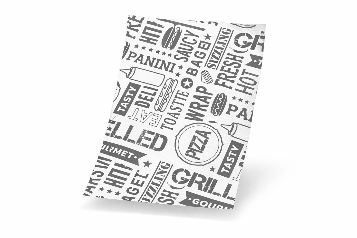 The Gourmet Grilled Printed Greaseproof Paper Sheets offer an easy way to upgrade food presentation without slowing down service. The greaseproof paper helps contain oils and moisture, while the bold typographic design adds character and professionalism across all servings.
