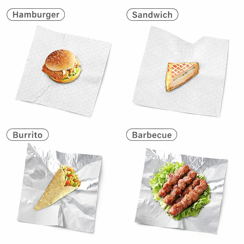 Because of the honeycomb foil structure, heat reflects back toward the food rather than escaping quickly. As a result, burgers, wraps, paninis and deli items stay warmer for longer during preparation, service and takeaway delivery. At the same time, the paper surface allows easy folding and secure wrapping, making these sheets practical for fast-paced kitchens.