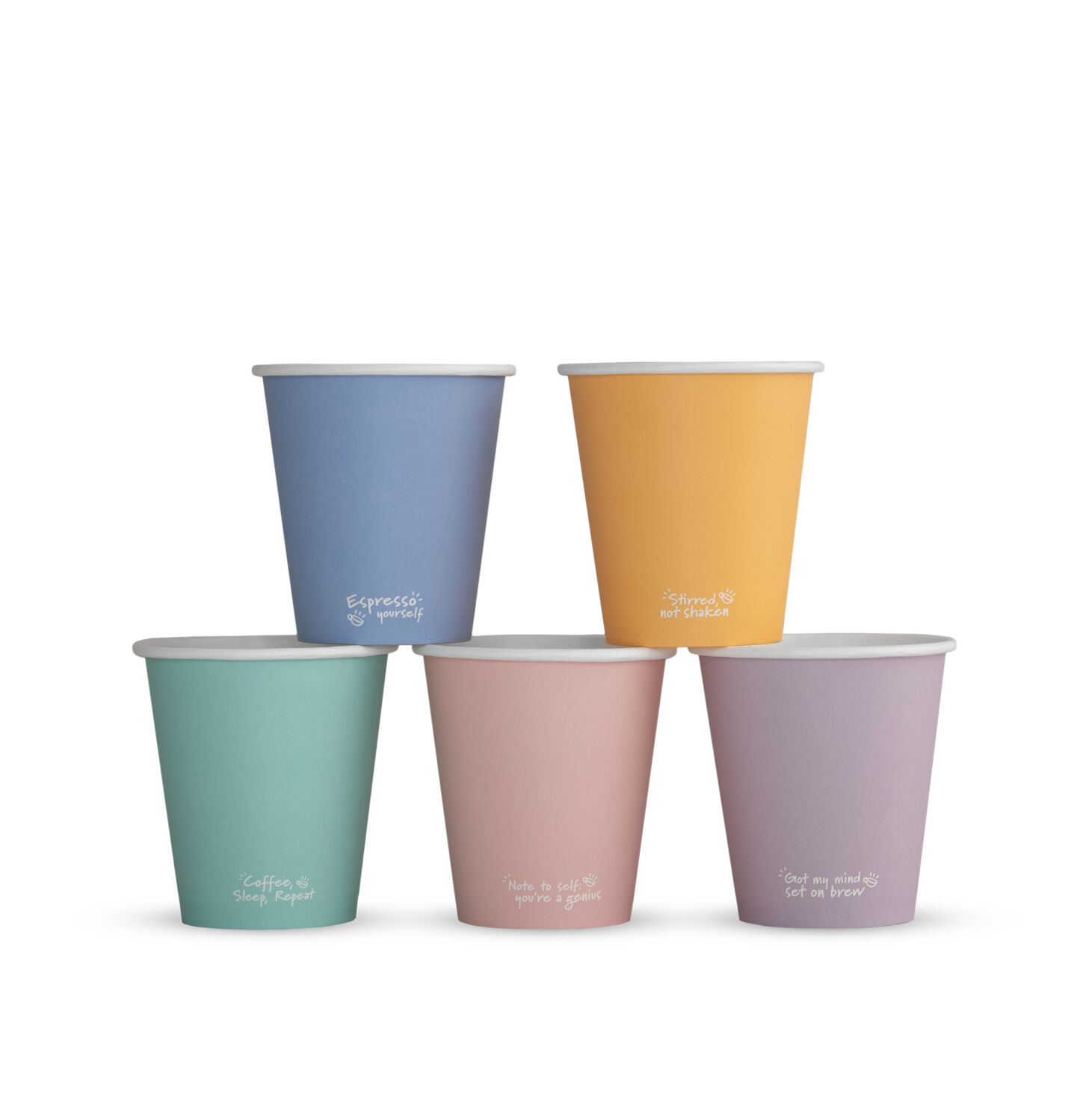 Our chic pastel coloured cups are lined with plant-based PLA, not plastic. The perfect look for an artisan coffee.