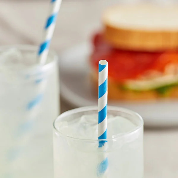 These 6mm x 200mm blue/white paper straws are perfect for: