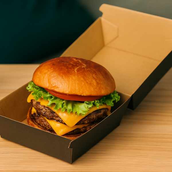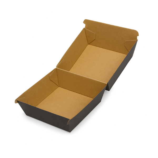 Serve your food in style with our Black Kraft Burger Box — a strong, recyclable food container designed for hot and cold dishes. Its sleek black exterior paired with a natural kraft interior makes it perfect for cafés, burger houses, food trucks and street-food vendors looking for a premium presentation.