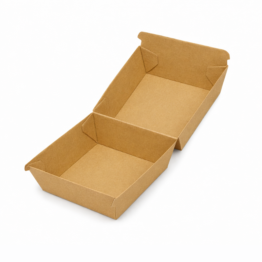 Crafted from sustainably sourced paperboard, this clamshell-style box offers excellent heat retention and grease resistance while being fully recyclable after use. It’s easy to assemble, stack, and store — ideal for busy kitchens or takeaway counters.